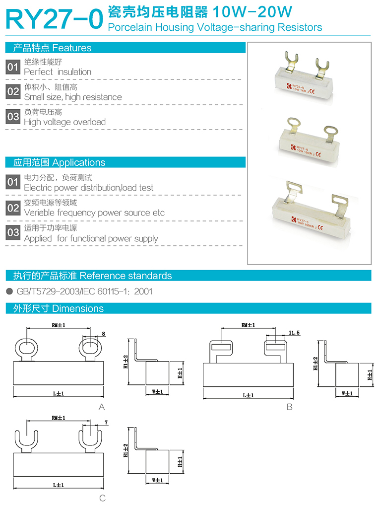 RY27-0型瓷外壳均压用电阻器